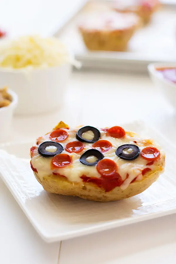 These baked potato pizzas are great because there’s no waiting for dough to rise multiple times. Pizza can now be had any night of the week! Plus, they’re individually portioned so everyone can enjoy their favorite toppings.