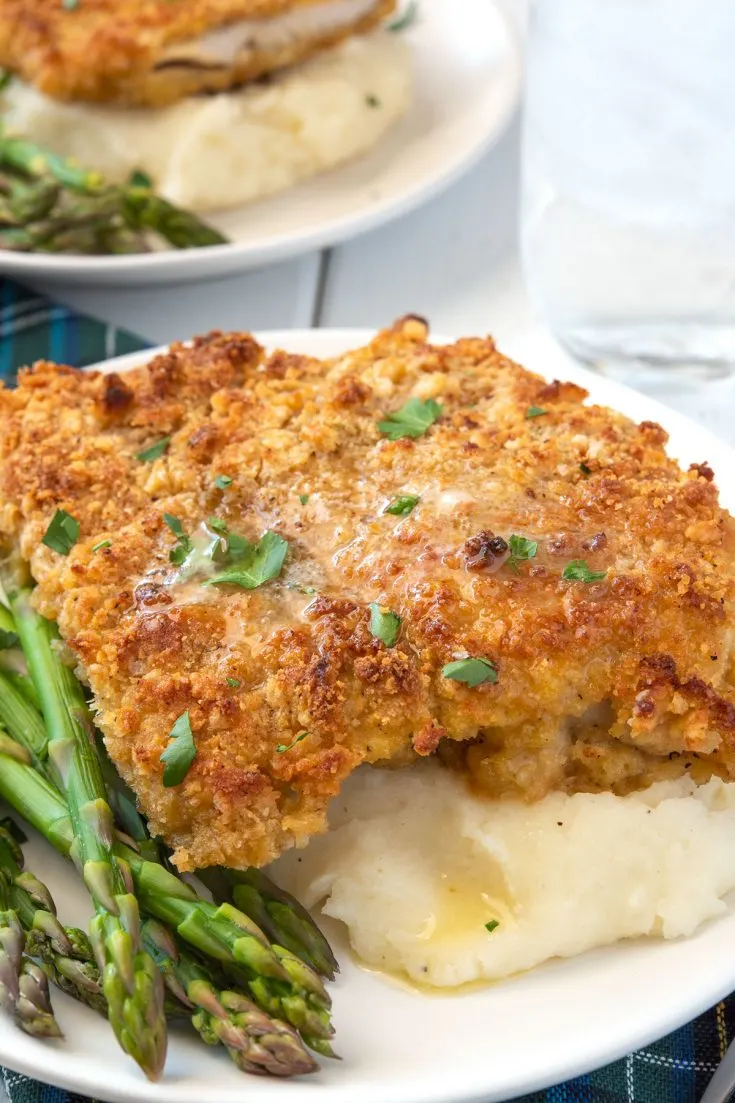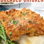 Tip: if you’re using regular chicken breasts (not thin cut/cutlets), I like to double the ingredients for the breading and do a double coat.